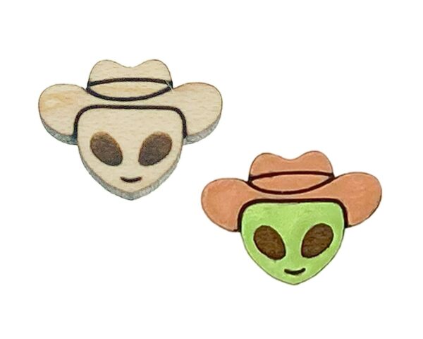 Alien with Cowboy Hat Wood Stud Earring Blanks