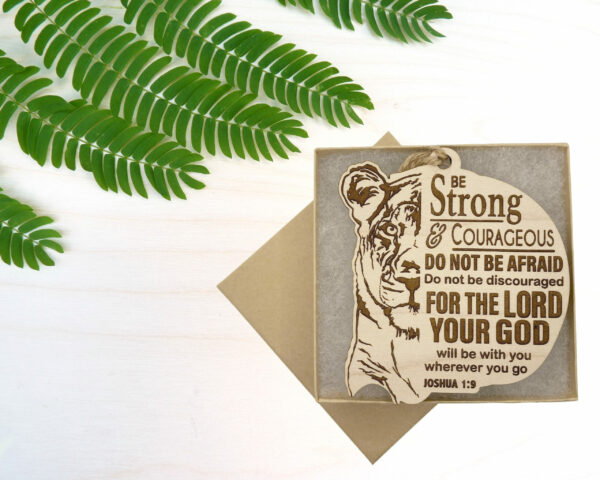 Be Strong & Courageous, Do Not Be Afraid Wood Ornament (Lioness)