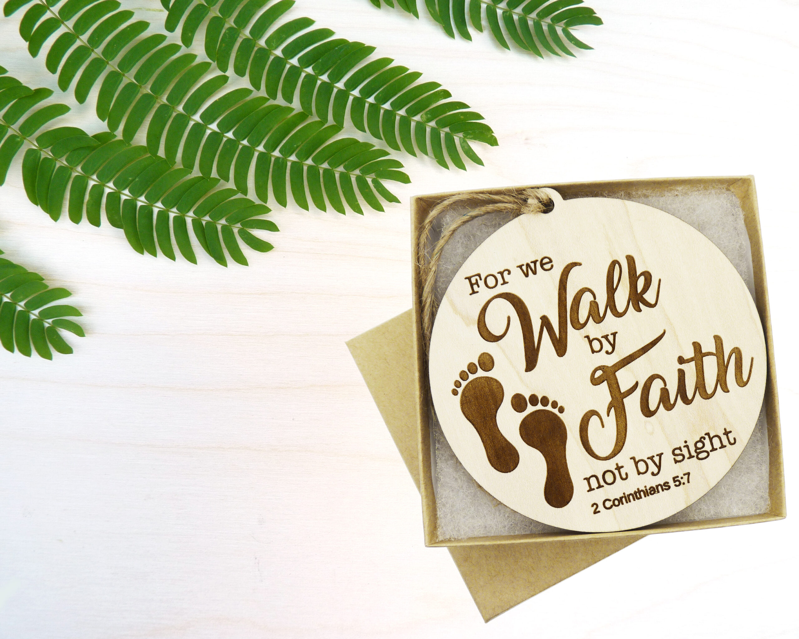 For We Walk by Faith Wood Ornament | Customizable | 2 Corinthians 5:7